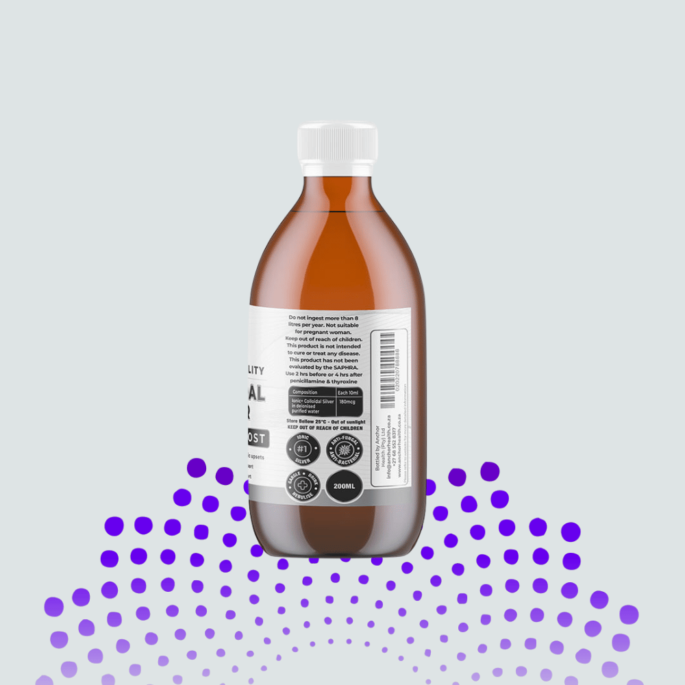 Enhance your well-being with Anchor Health’s Colloidal Silver Liquid Immune Booster and Anti-Microbial, a powerful daily tonic designed to support and strengthen your immune system. This premium colloidal silver product offers a natural first line of defence against colds, flu, and various infections, while also aiding in the relief of gastric upsets and food poisoning.